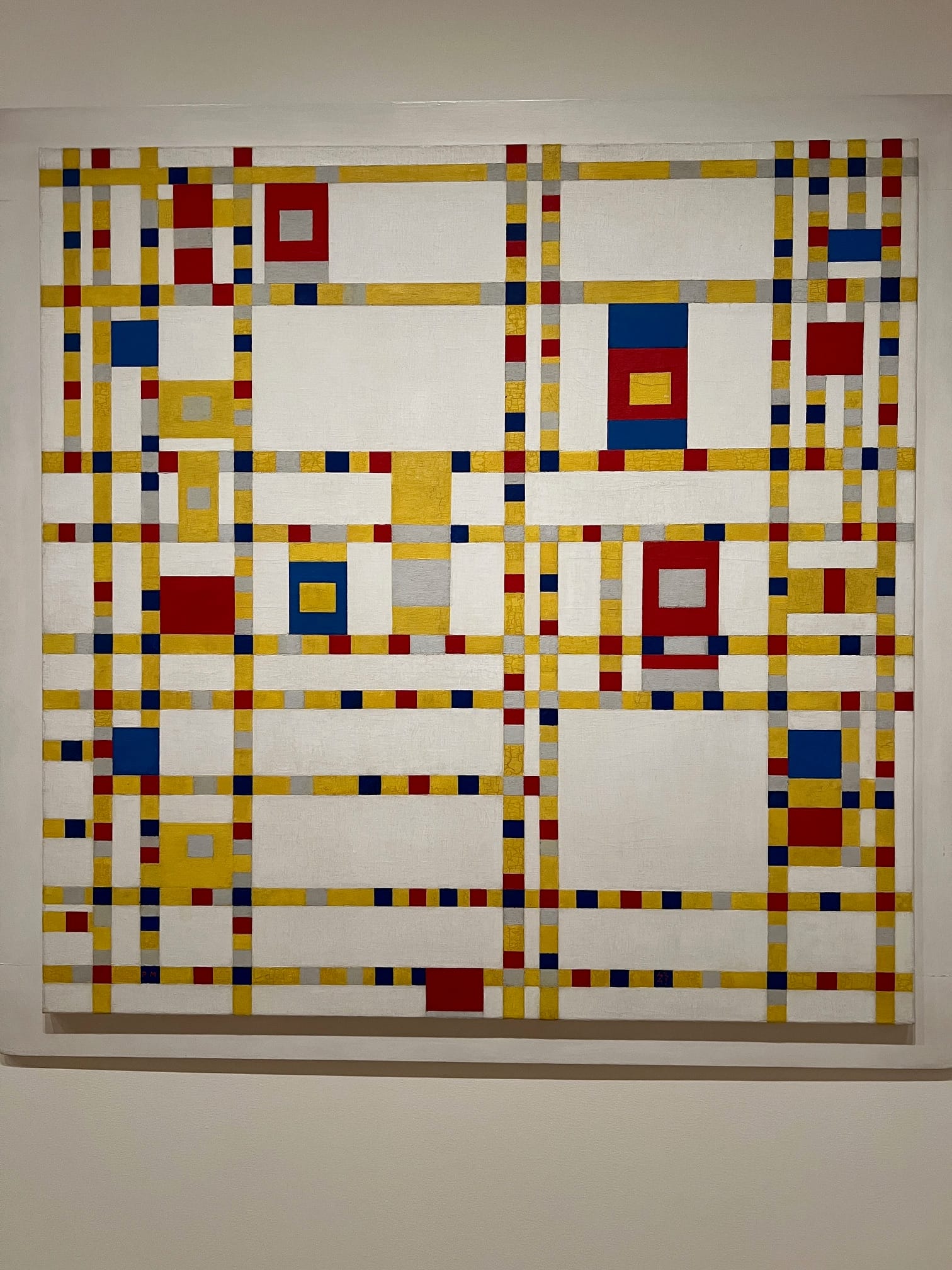What adds another layer for me is the aesthetic of the high-rise condominiums. Their facades are marked by bold blocks of color arranged in grid-like patterns, reminiscent of the paintings of Piet Mondrian. He composed geometric grids punctuated by vivid squares of primary color. One painting in particular — Broadway Boogie Woogie — came to mind as I watched the city pulse.