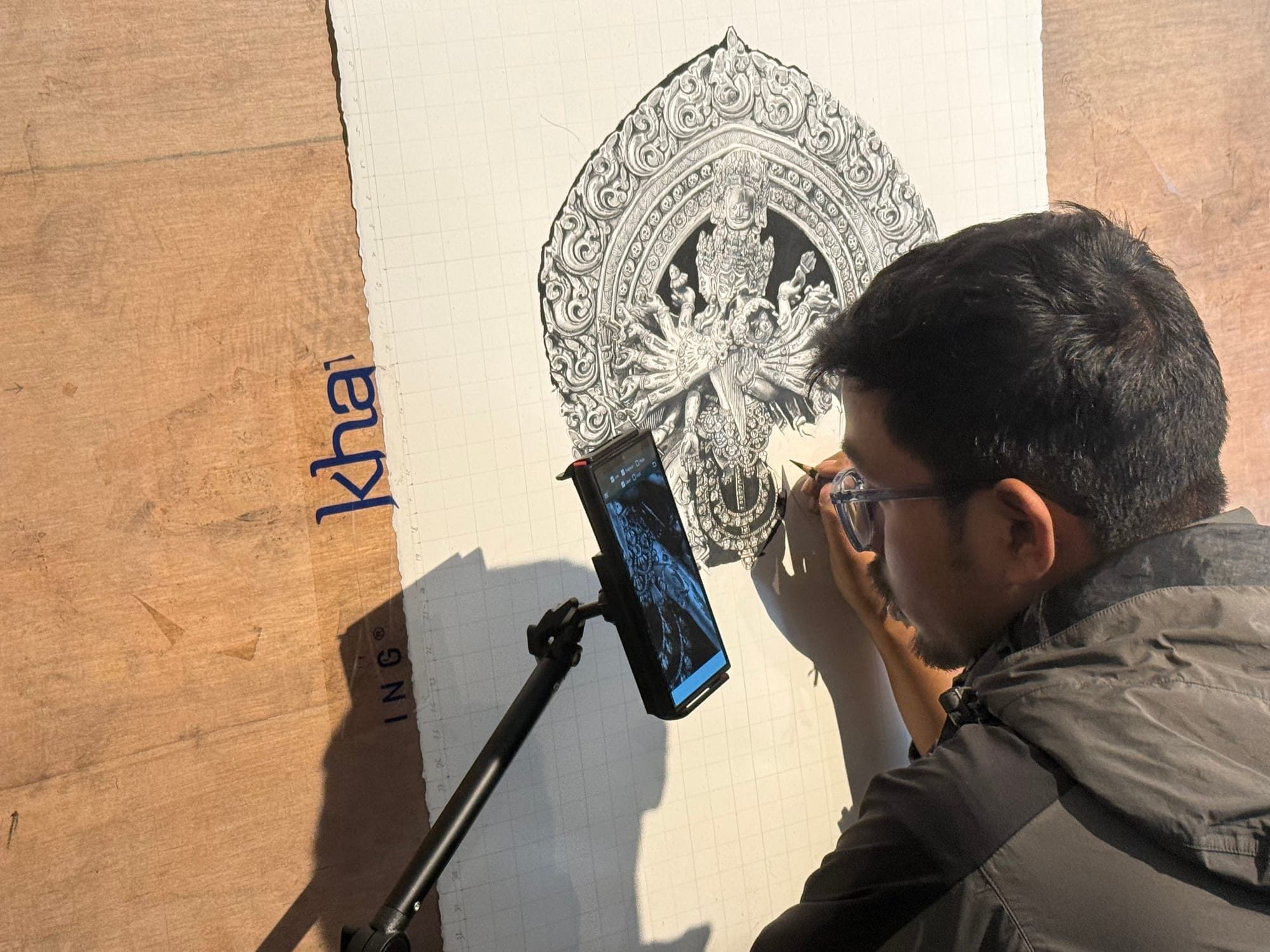 I visited a small gallery with artists in residence. One invited me to look at his work—highly detailed, rooted in traditional Newari forms, yet reaching beyond them. There was a probing quality, as if something was pressing against inherited constraints.
