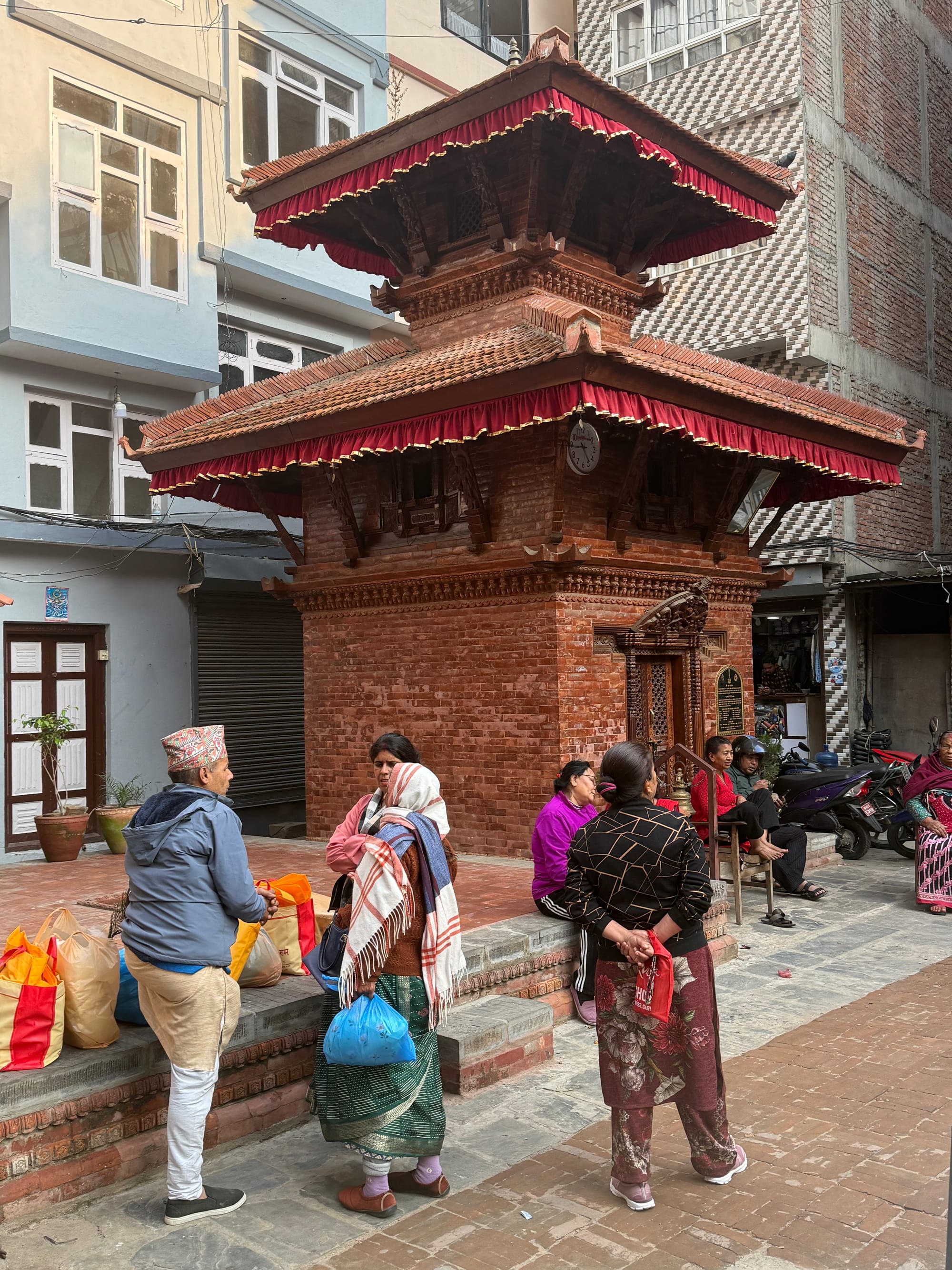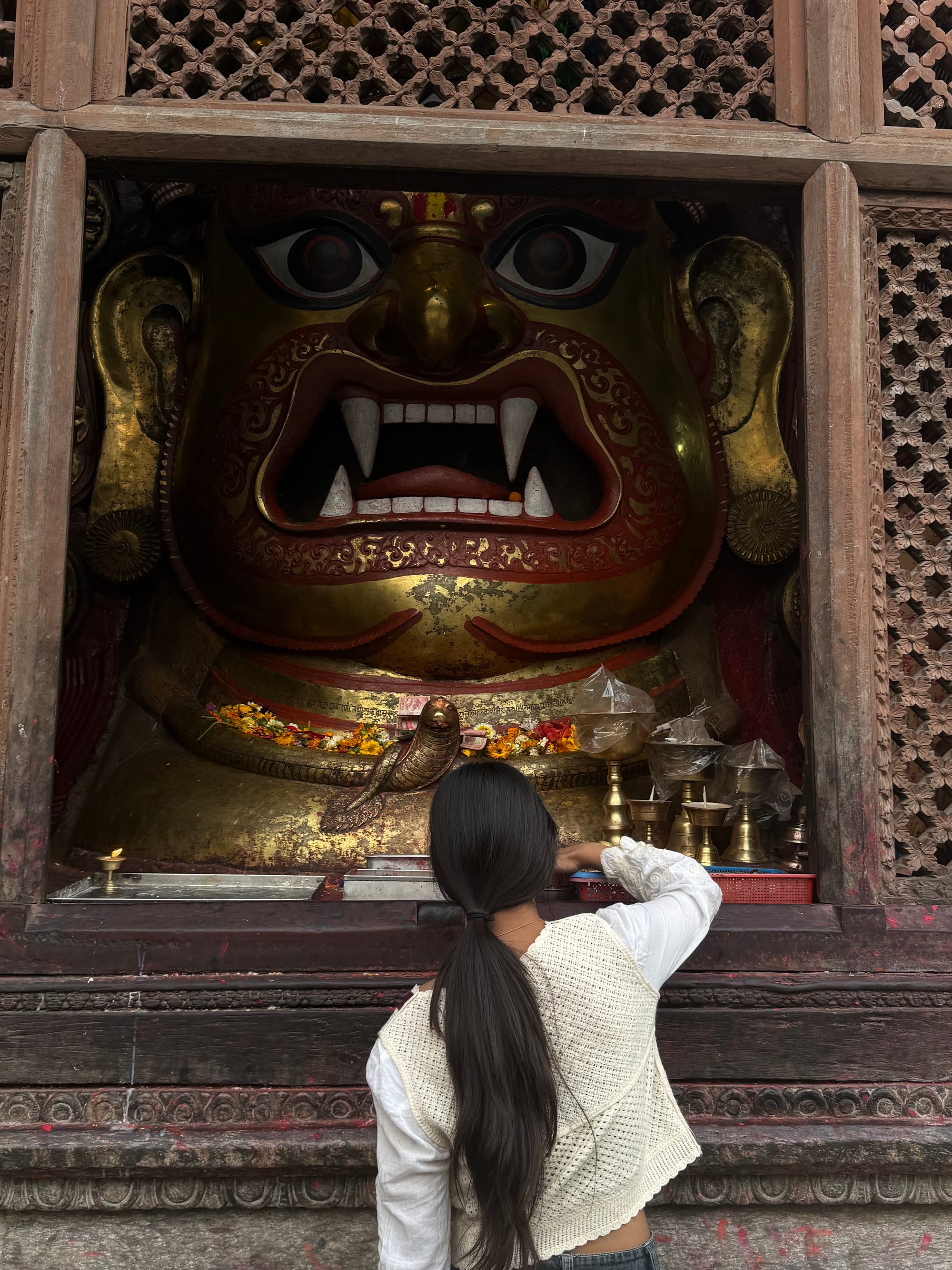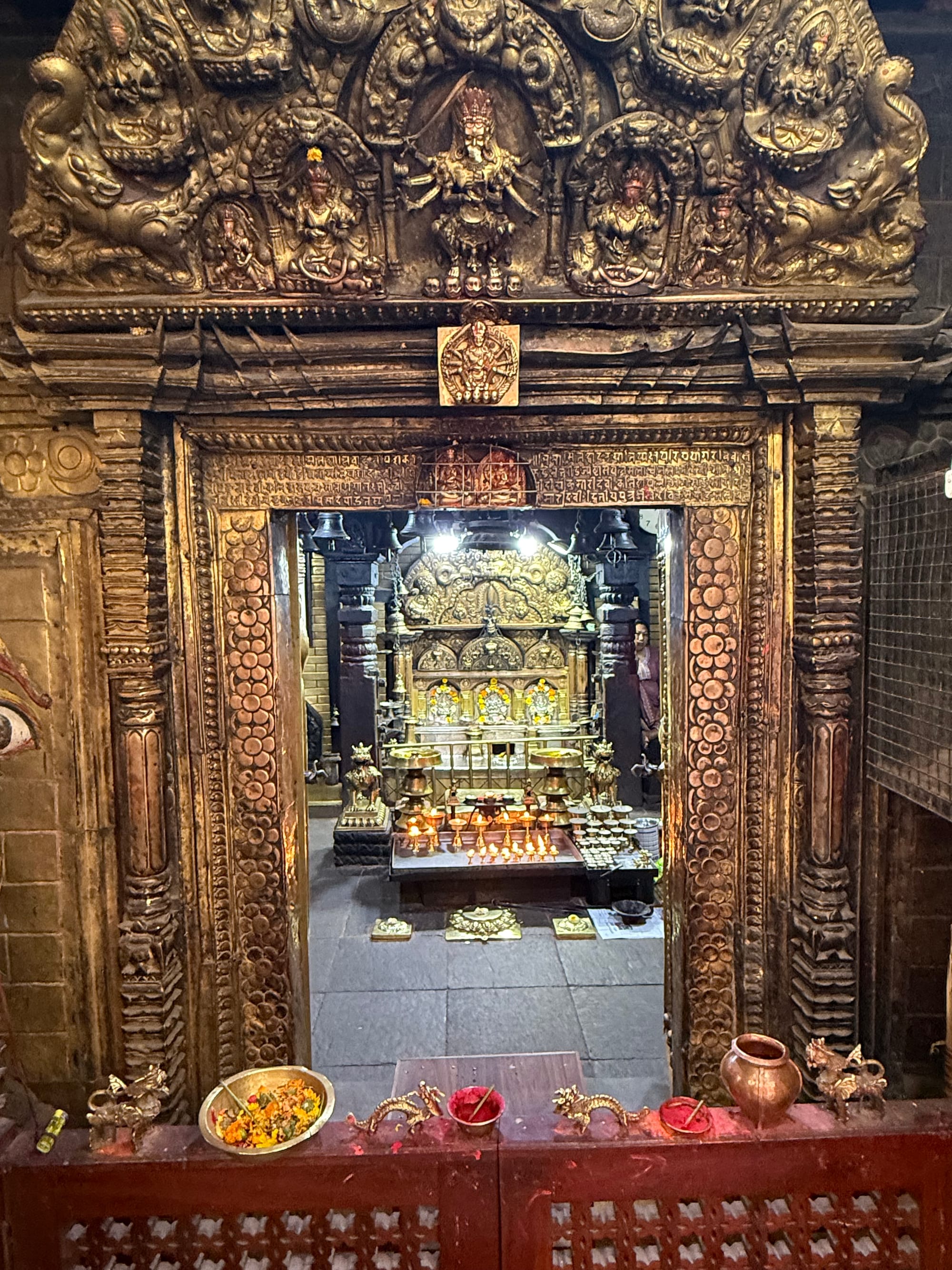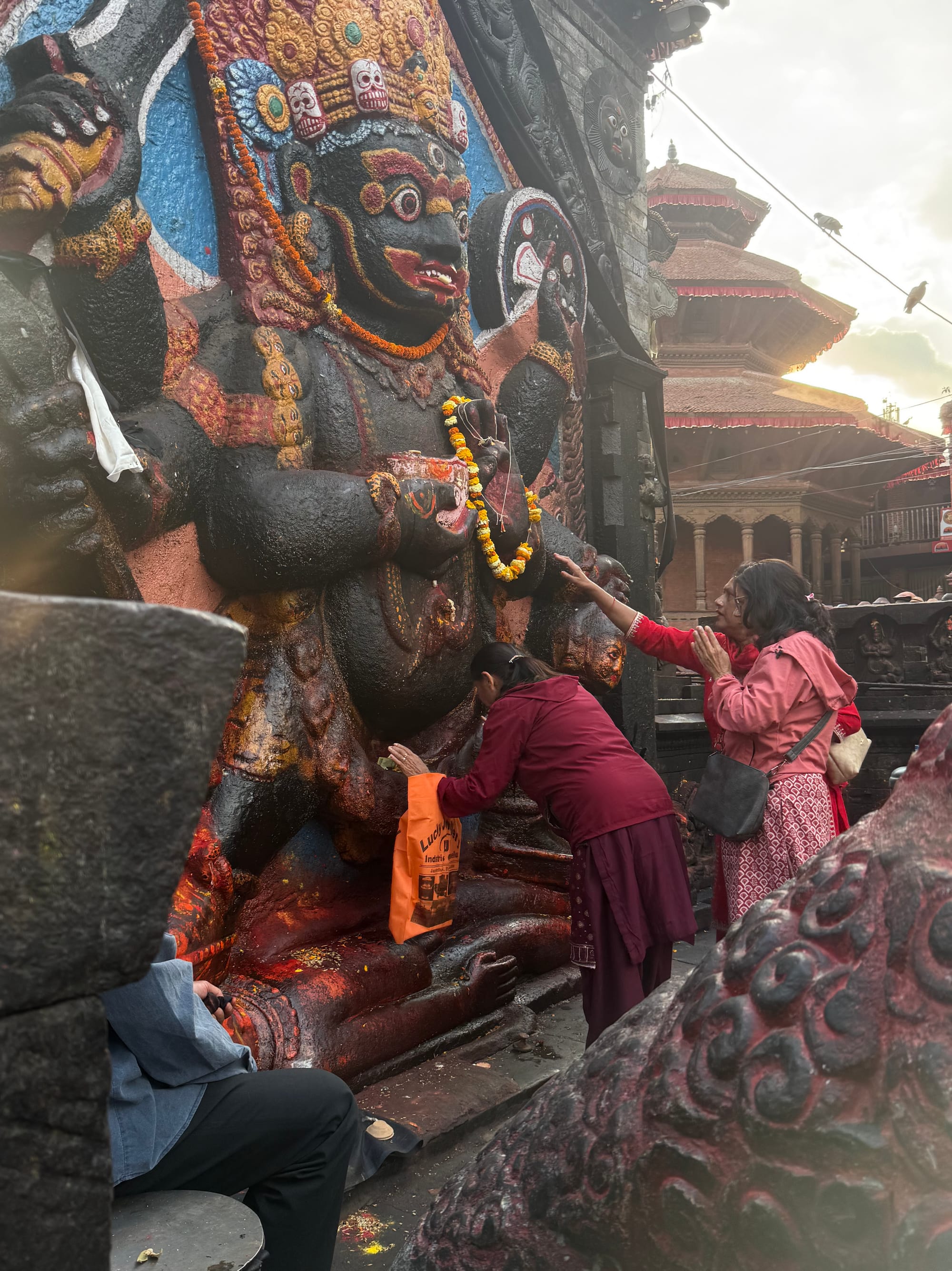 At one point he led me to a small shrine, blessed himself, and then marked my forehead with vermillion and petals. It was awkward, and also touching—a quiet kind of re-entry.