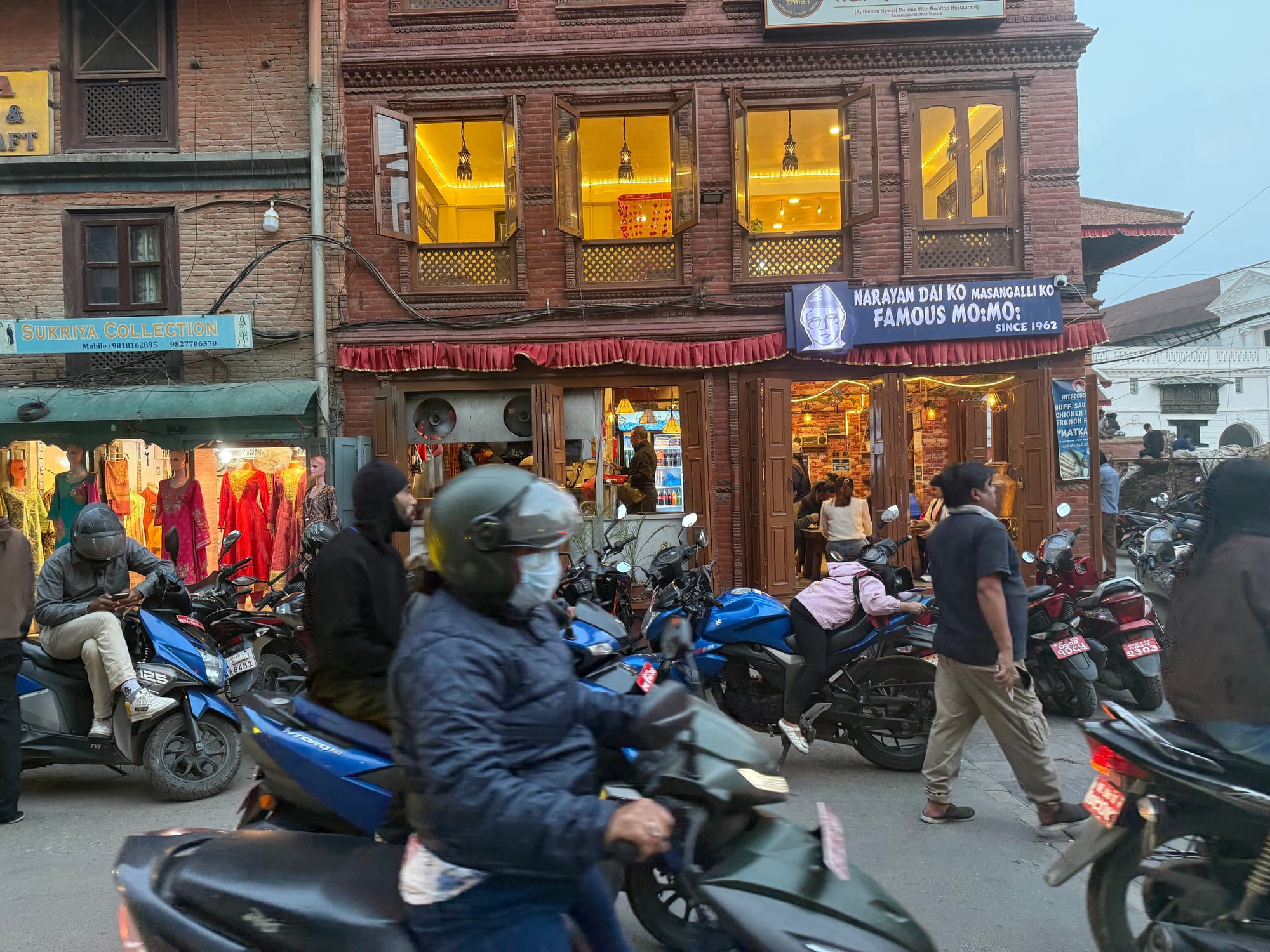 Walking through Thamel, I was immediately struck by the volume of motorcycle traffic. Much of the time you share the street with it; sidewalks are minimal or nonexistent. Kathmandu is still walkable, but it now asks for a heightened vigilance I don’t recall from earlier visits.
